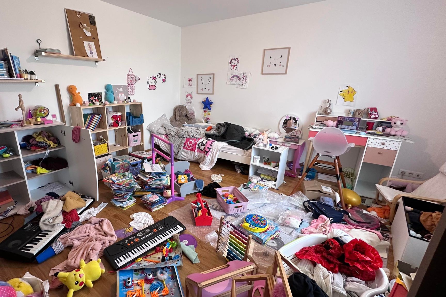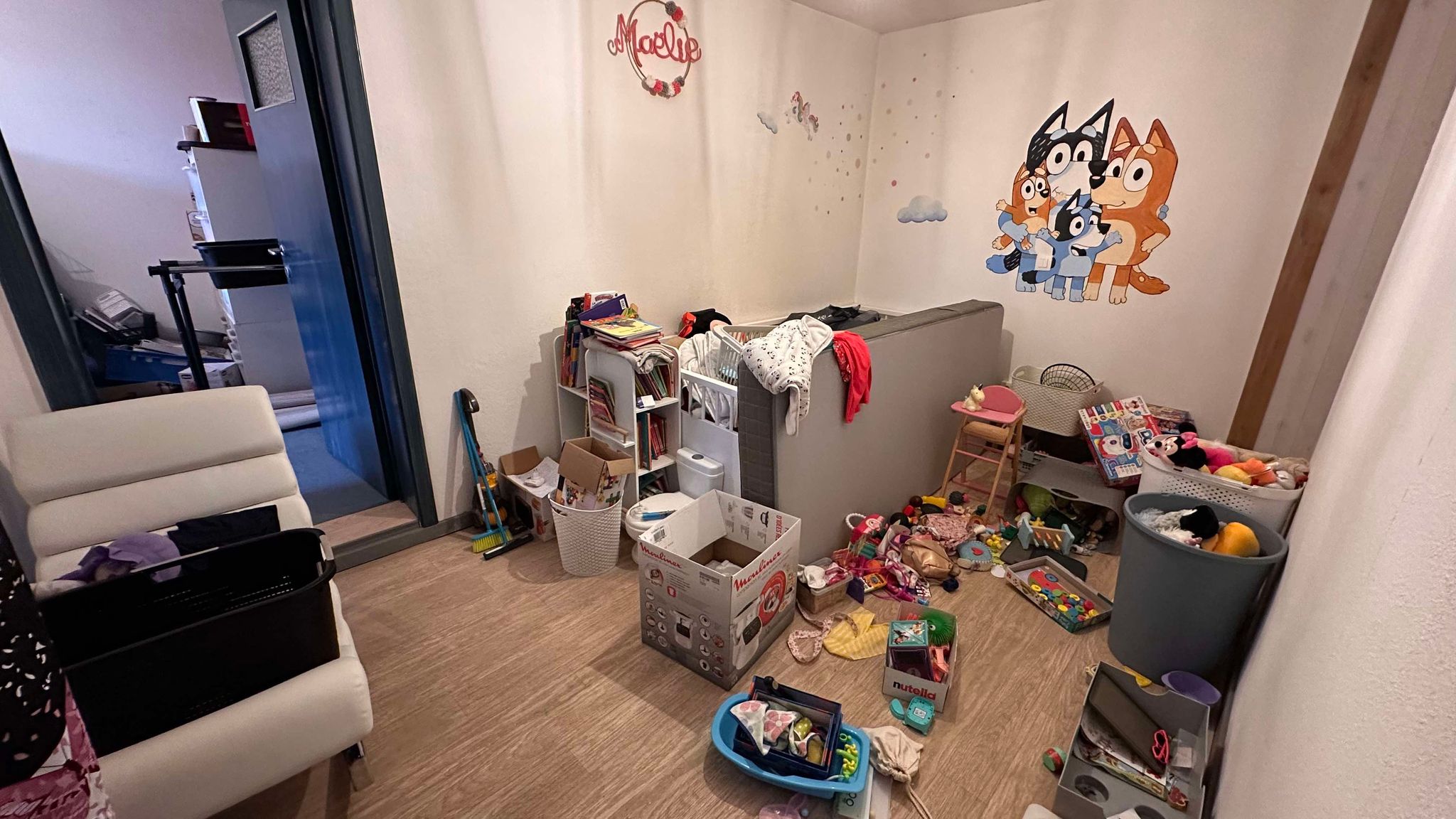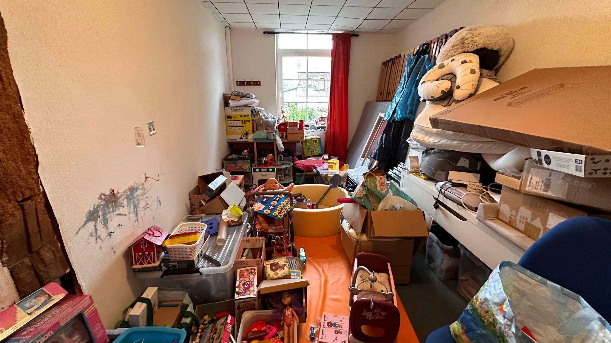 Désencombrement, organisation et aide à la projection pour une pièce débarras en vue de la création d’une salle de jeu partagée pour deux enfants avec des envies et des besoins distincts. Les travaux seront réalisés ensuite par les clients.