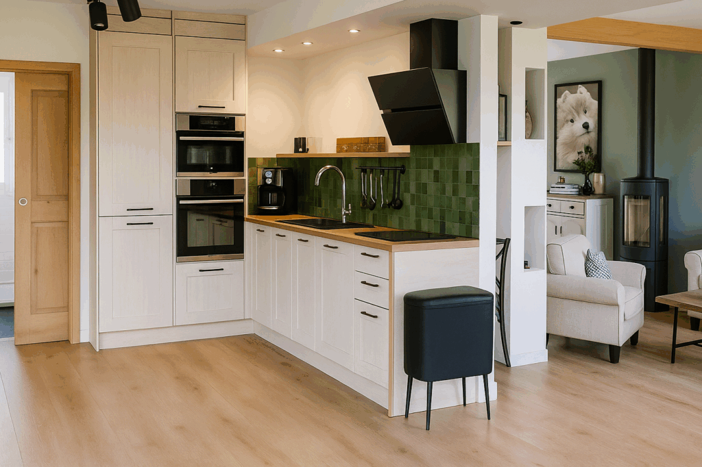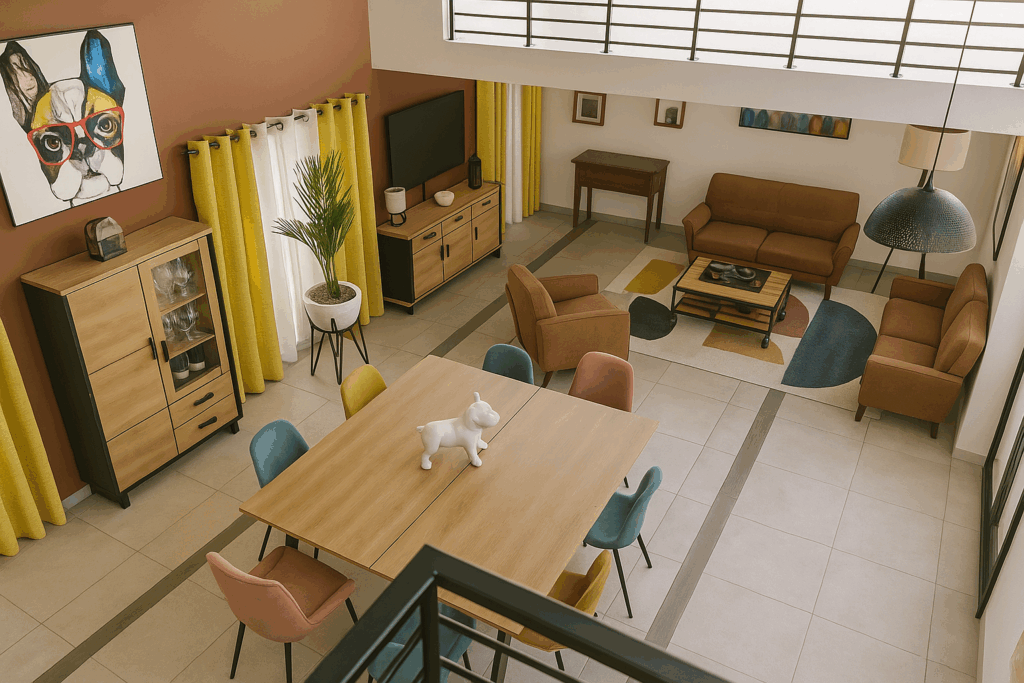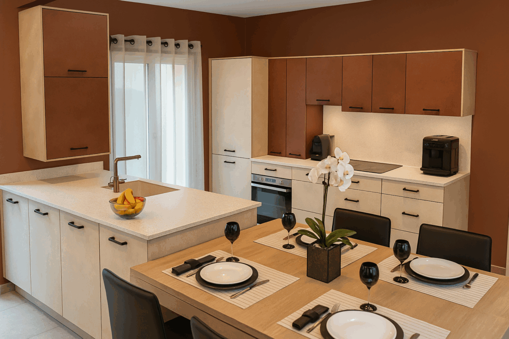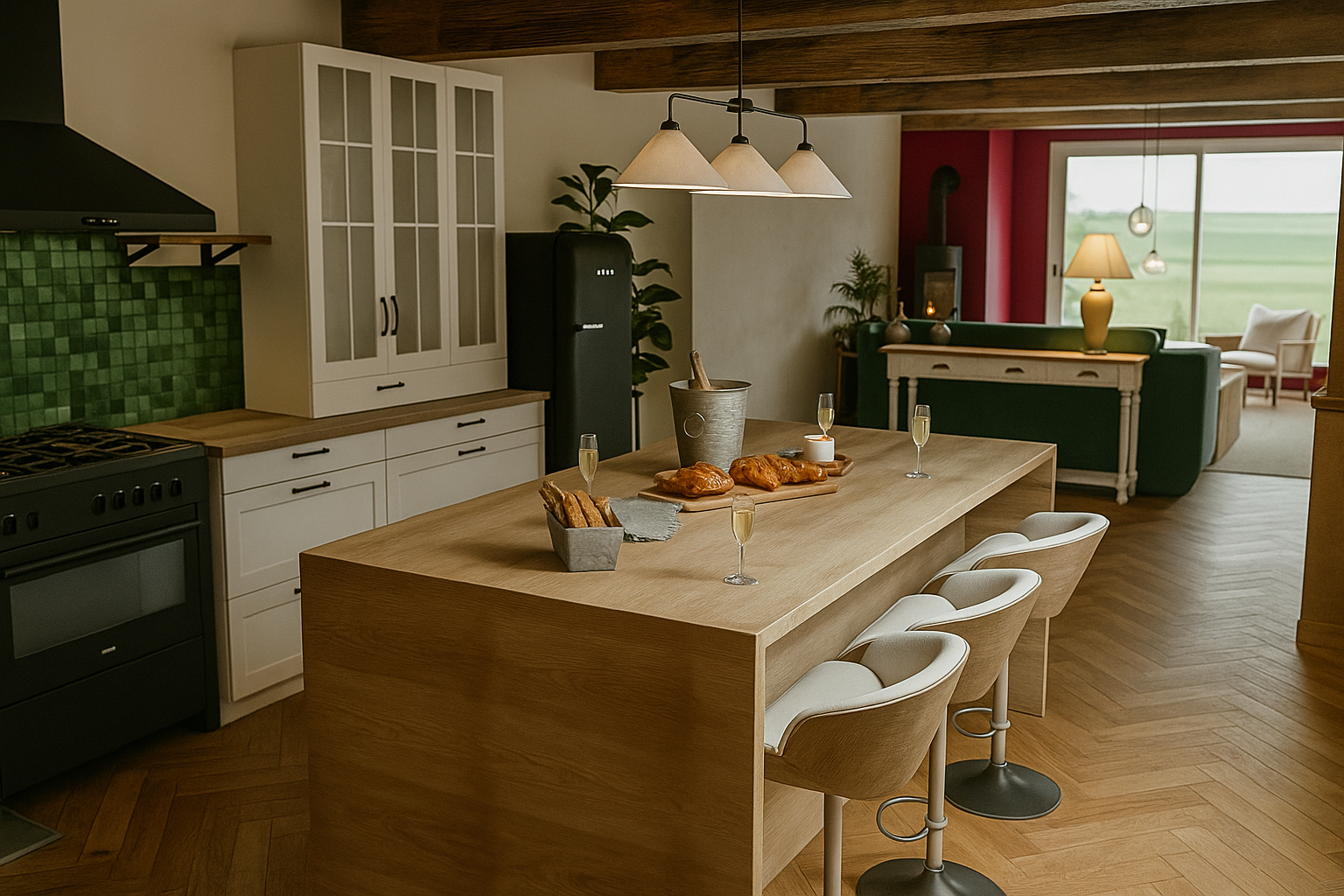 Décoration et aménagement d’une cuisine et séjour pour une famille de 4 personnes avec une maison en rénovation complète. Deux propositions avec quelques différences ont été proposées au client. Serez-vous retrouvez les subtiles différences ?