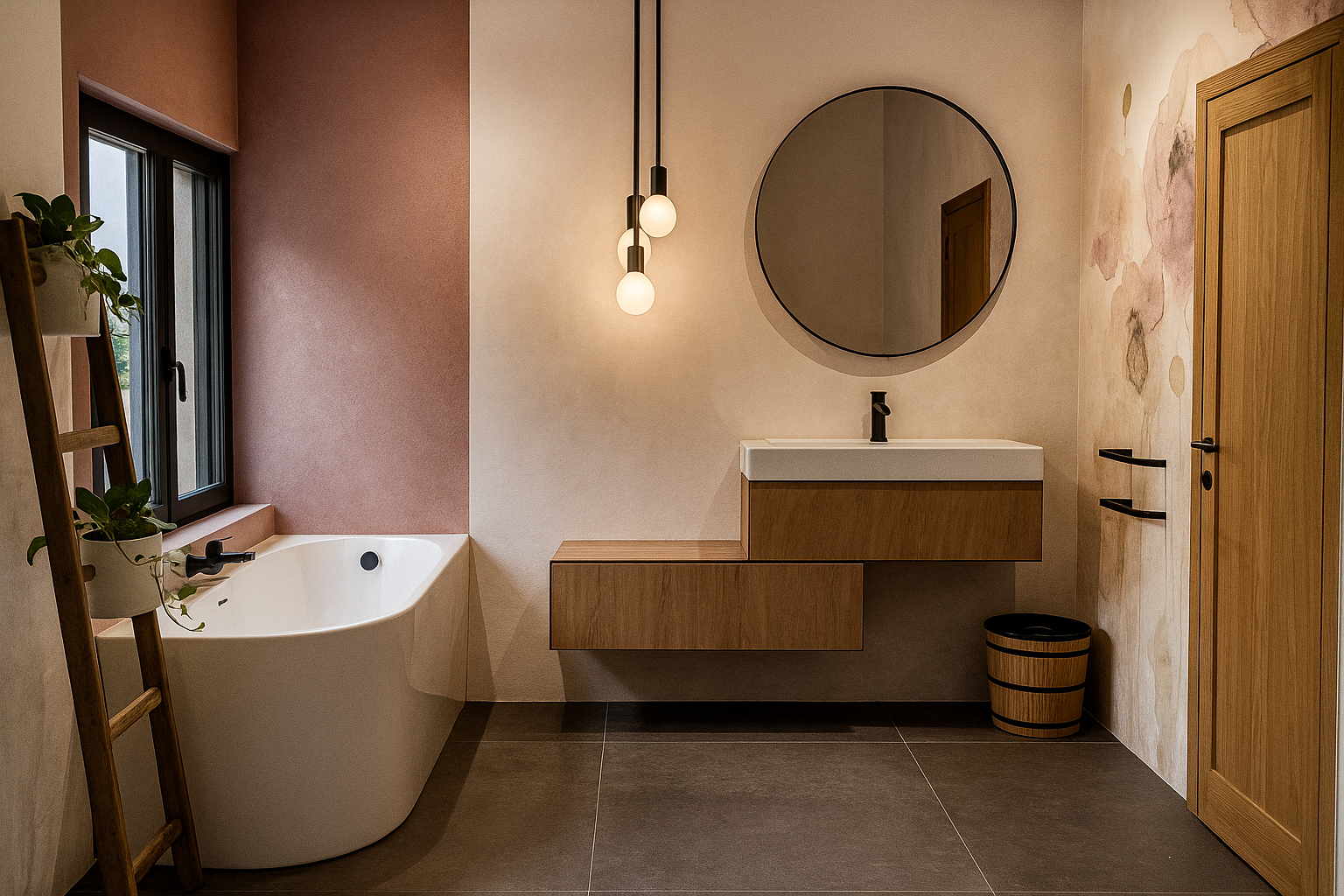 Aide à la projection d’une maison nouvellement construite pour la partie décoration d’un salon et d’une salle de bain avant achat du mobilier et des éléments par la cliente.